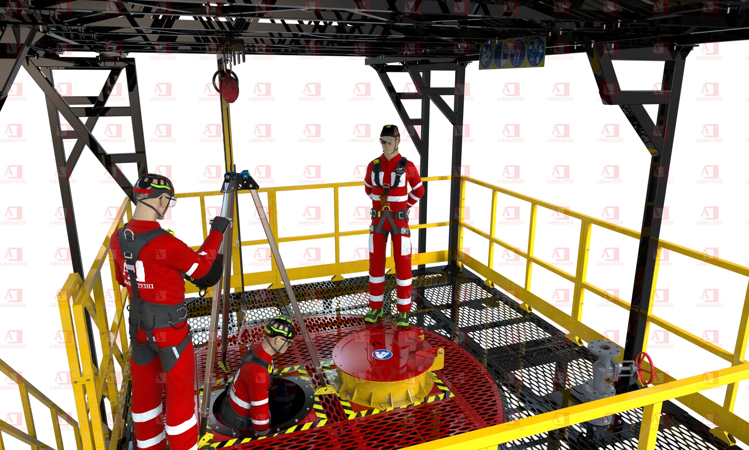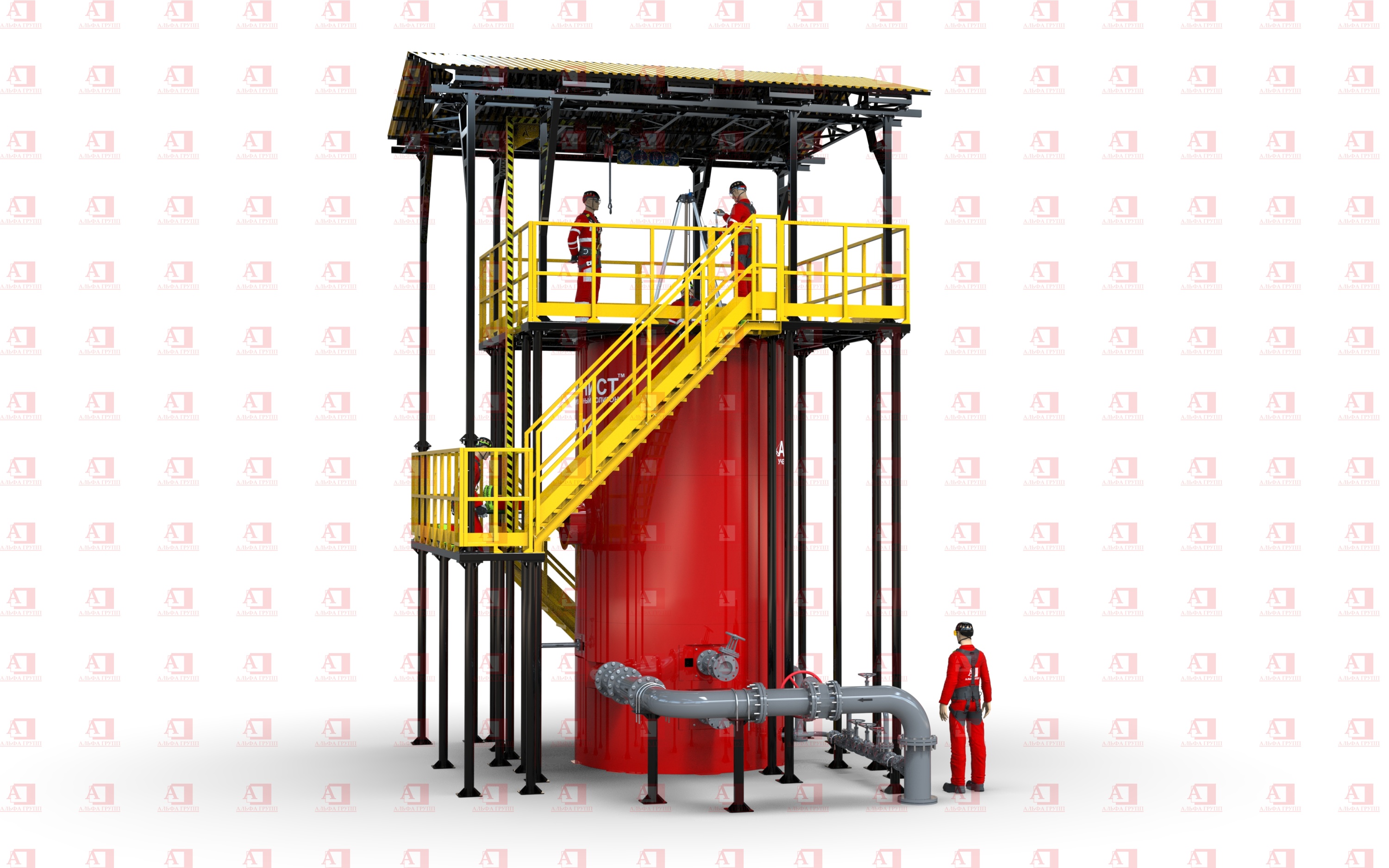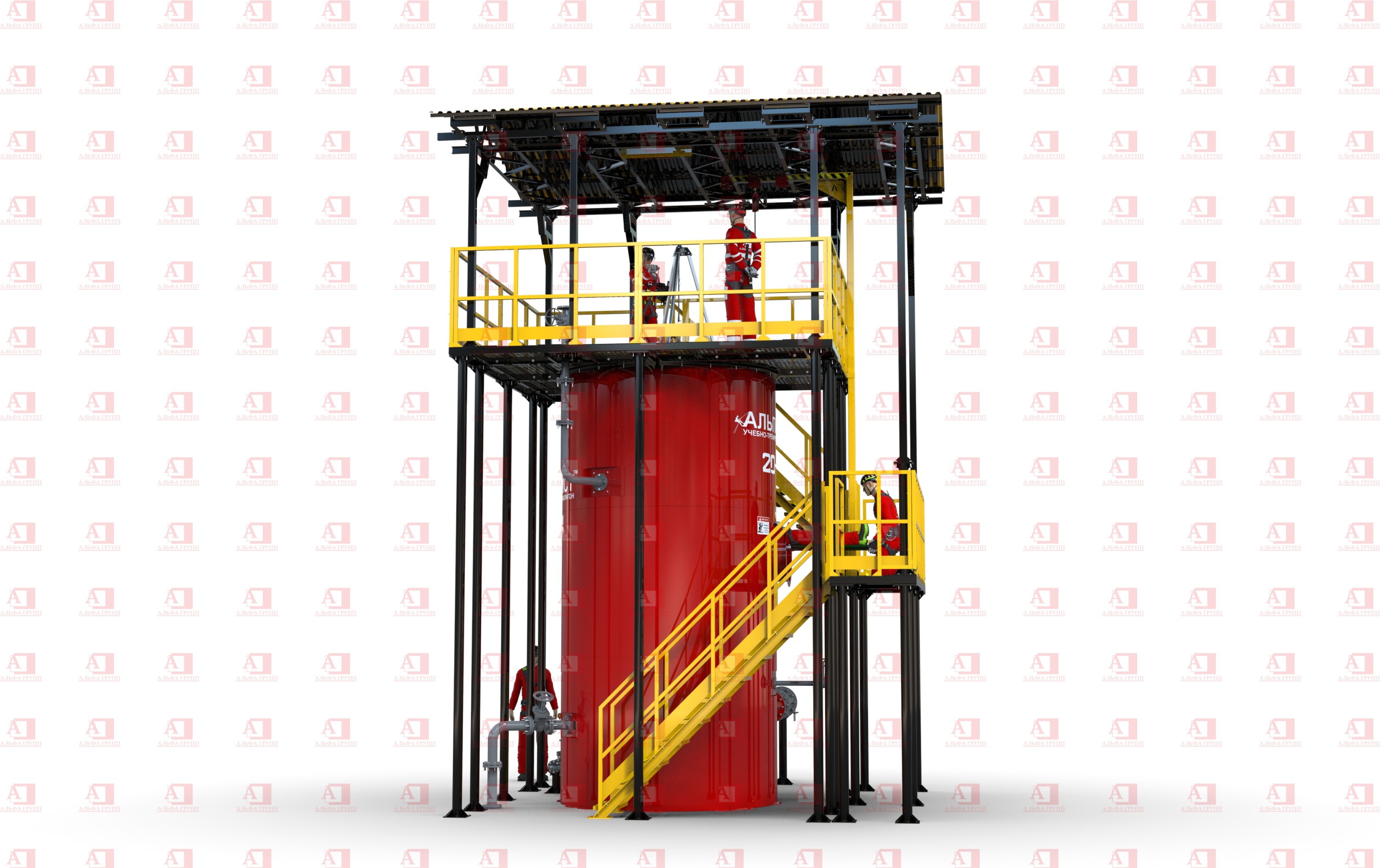 Места интенсивной работы с трипод усилены листами стали и швеллером. Люки и лазы размещены строго симметрично друг под другом для максимального использования высоты комплекса.