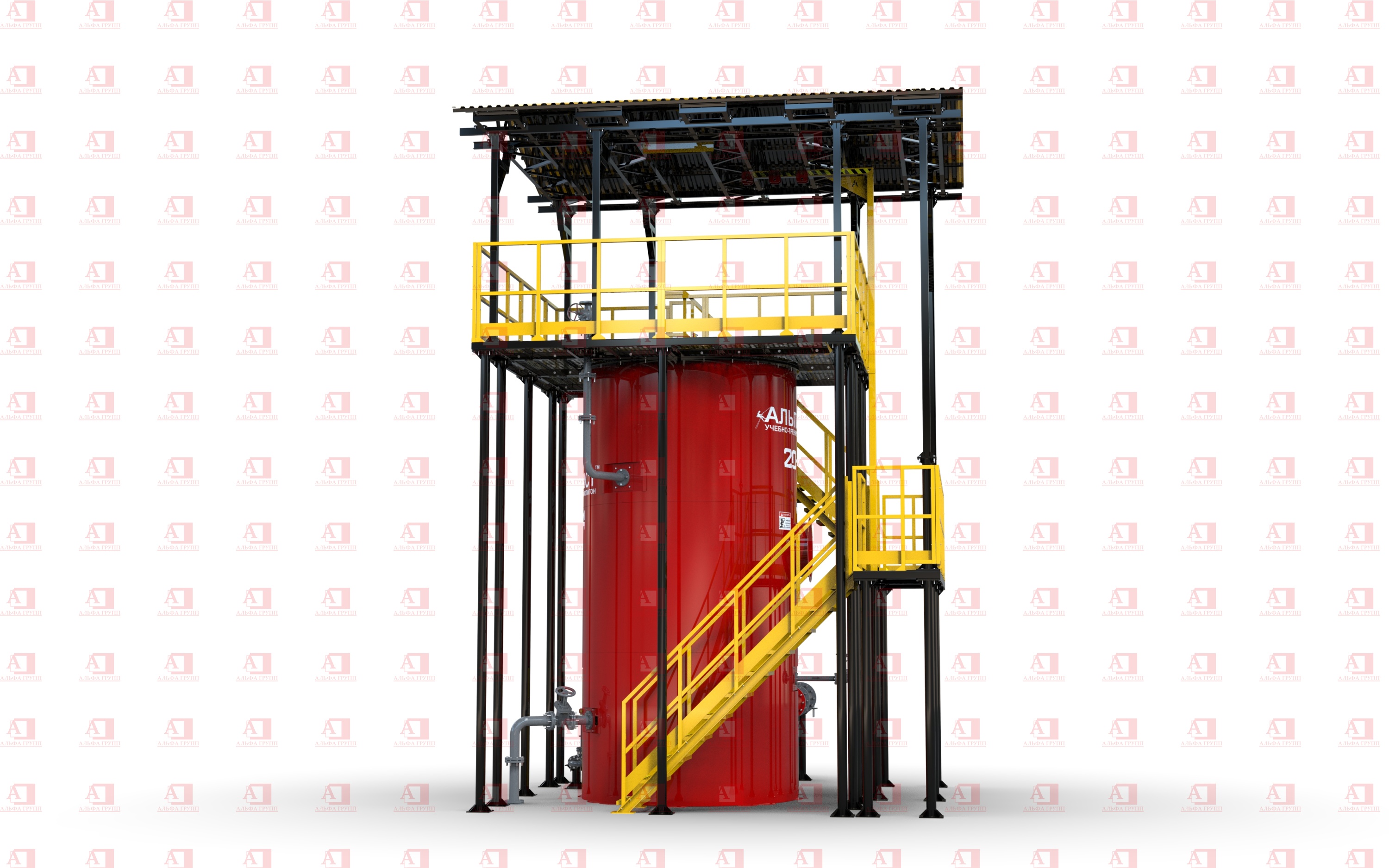 Доступ на рабочую площадку второго уровня осуществляется по стальной маршевой лестнице.