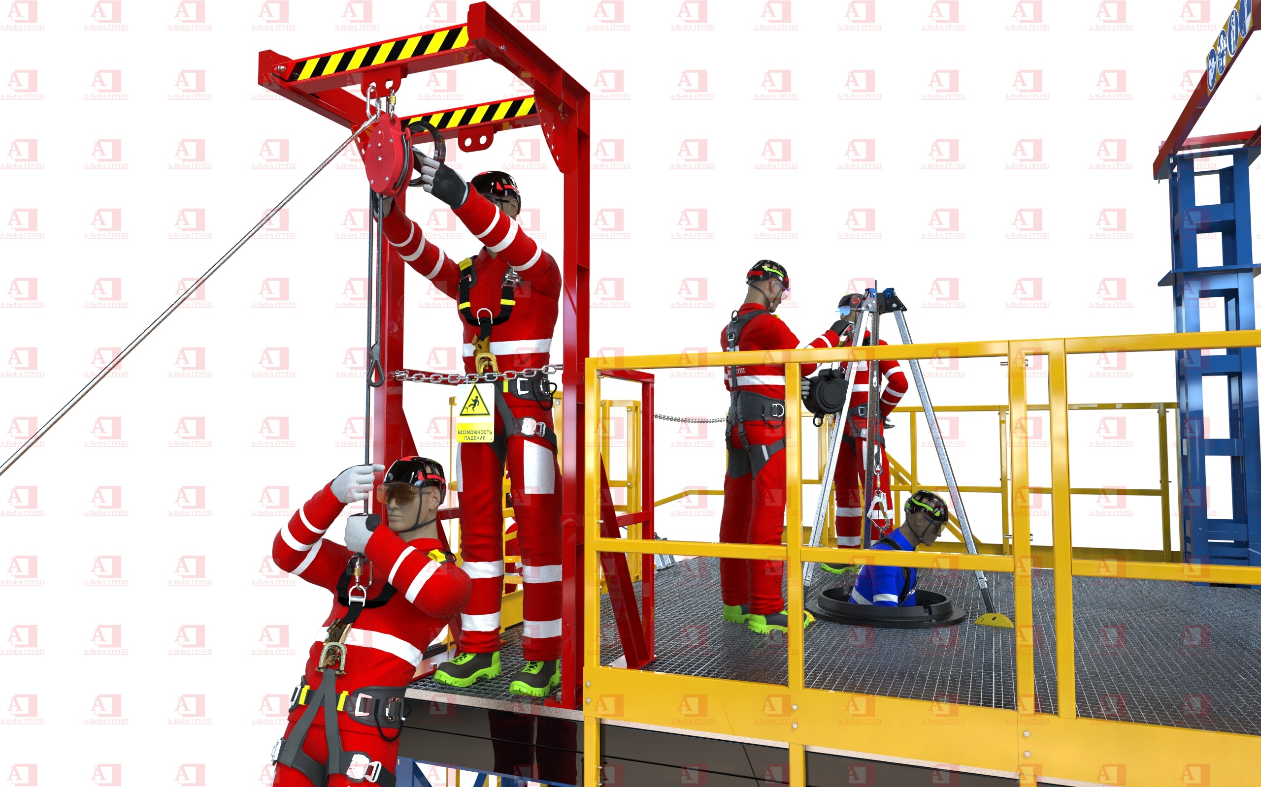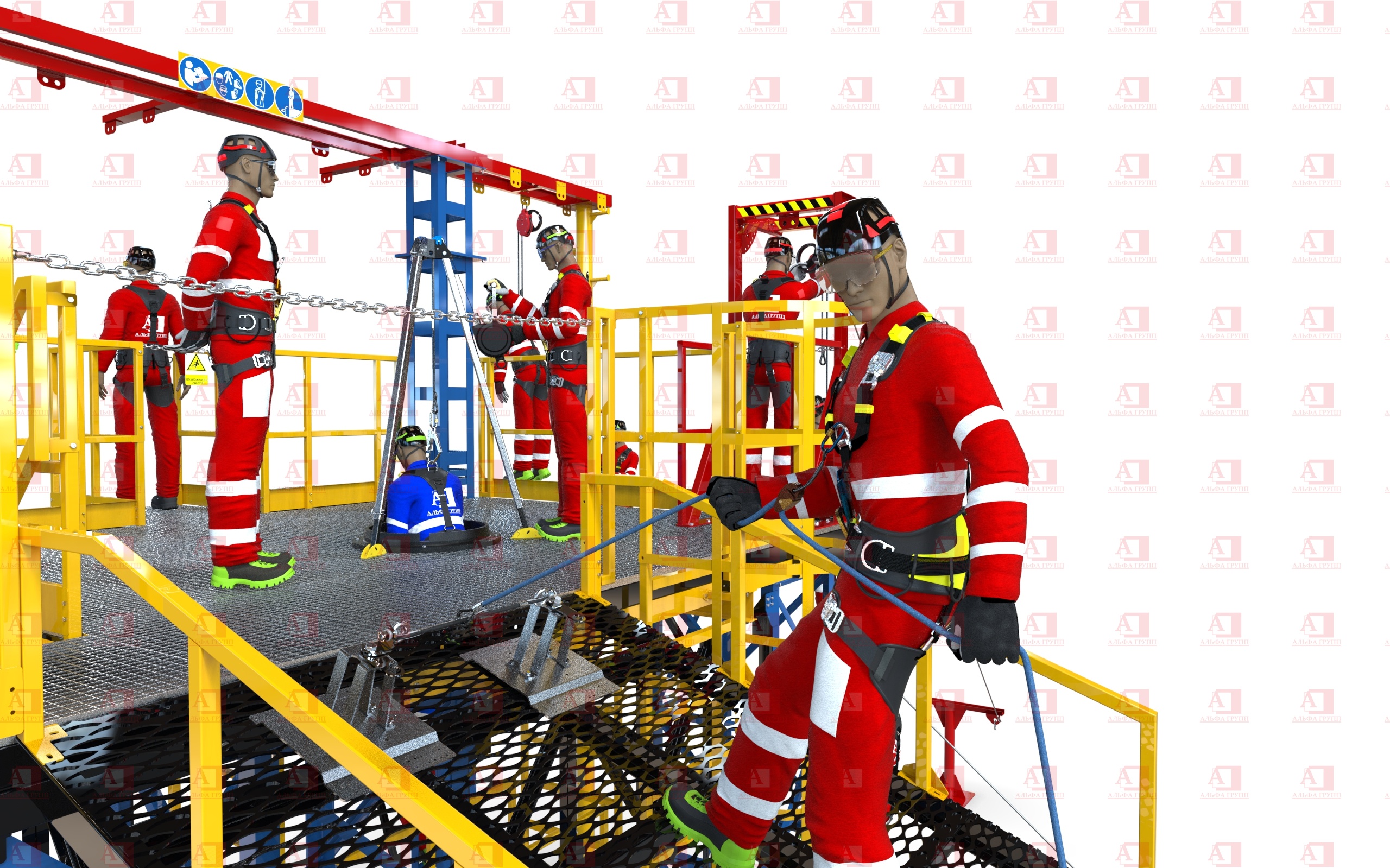 Для защиты от риска падения комплекс оснащен перилами и защитным ограждением высотой не менее 1100 мм.