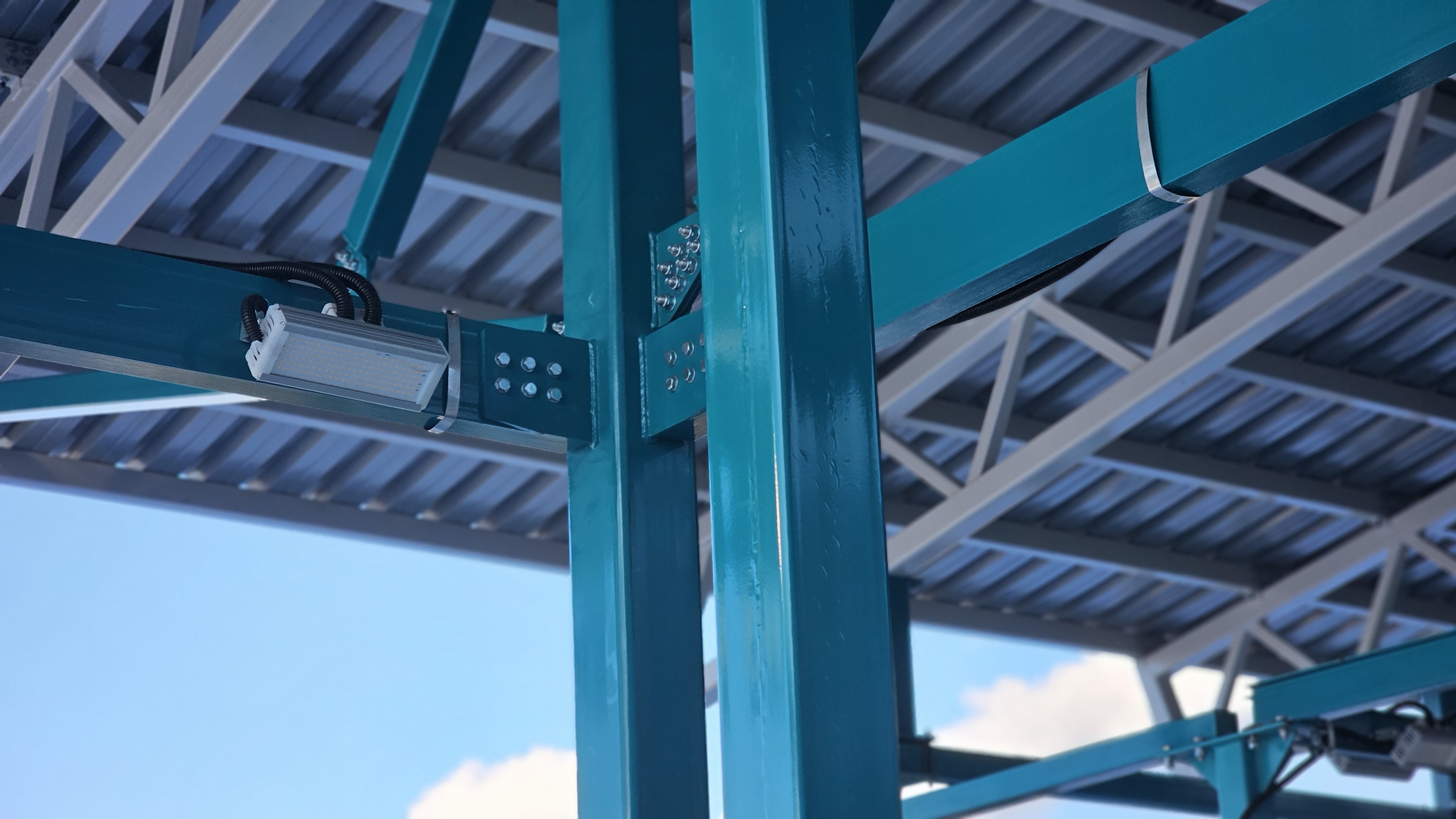 Учебный полигон «Сливо-наливная эстакада» представляет собой масштабную площадку длиной 39 м, шириной 15 м и высотой 12,2 м, общим весом 128 377 кг. Она оборудована надежной крышей для защиты от атмосферных осадков, эффективными системами освещения и комплексными мерами безопасности, включая ограждение по периметру. На бетонированной площадке размещены полноразмерные имитации: